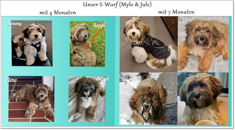 Welpen-Fotoalbum Herzlichen Dank, dass ihr uns so teilhaben lasst am Leben unserer Havi-Kinder und wir freuen uns dass wir hier ab und zu auch etwas veröffentlichen können :-) Wenn ihr uns Fotos schickt, die nicht in die Homepage sollen, einfach Bescheid geben (wir wollen sie trotzdem sehen ha ha) Wir bekommen immer so liebe WhatsApp Nachrichten, Anrufe, Fotos und Videos von euch. Es ist so herrlich, dass auch wir so viel miterleben dürfen von eurem Leben!!! Und oft denken wir mit einem breiten Grinsen im Gesicht oder einem warmen Flash im Herz : "Made my day" :-)