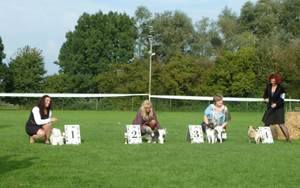 Ich wachse und gedeihe grins und ich hab sogar schon meine erste Ausstellung gemeistert: In Steinbach bekam ich 2mal v v 1 und wurde von allen Rassen: Best Baby 2. Platz. Alle sind ganz stolz auf meinen ersten Pokal !!!