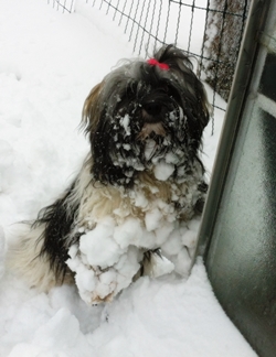 Uiuiui - bei uns hat es ganz schön geschneit. Das macht einen Spaß!!! Aber lange geht die Tollerei mit Iny nicht - schaut mich mal an!!!! Aber nicht lachen !!!!