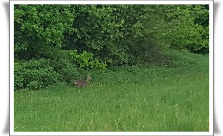Direkt hinter dem Haus über Felder und Wiesen laufen zu können und Rehe, Hasen, Vögel, Fledermäuse und Glühwürmchen von der Terrasse aus zu beobachten ist für uns und unsere Tiere Luxus pur. Hier leben wir gerne!