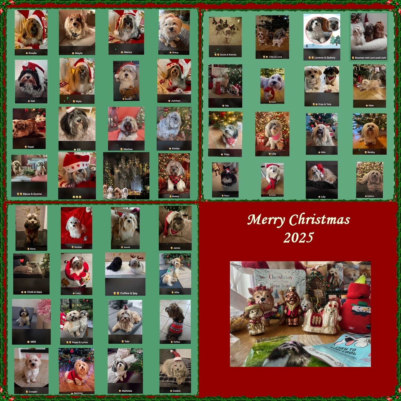 We proudly present Unsere Weihnachtshavikinder von 2025 Herzlichen Dank nochmal euch allen für die vielen süßen Fotos! Ich bin von einem Zuckerschock in den nächsten gerutscht !!! (Bitte !!! Ich hoffe nicht, aber falls ich jetzt einen vergessen hab beim Sammeln, dann bitte sofort melden, dann besser ich das Sammelbild aus !!!!) So schön, dass ihr immer wieder an uns denkt - das macht uns das Herz warm - nicht nur an Weihnachten !!! Rutscht alle gut in das Jahr 2026 und viel Gesundheit, Glück für euch, eure Familien und für alle die dies hier lesen ! Und vieeel Freude mit euren Schätzen!