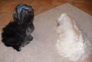 Ganz kurzfristig hat es mal wieder geklappt und es gab ein spontanes Havi-Treffen von Mancy's und Mylo's D-chens und Iny's Sohn Gysmo :-) Leider konnte Dusty nicht dabei sein, da sie grade läufig ist. Na die Rüden in der Runde hätten sich ja schon gefreut ha ha..... Aber auf die Bettchen-Besetzer Mieze muss ja schließlich auch jemand ein Auge haben grins....