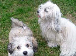 Zum Sommerfest in der Hundeschule durfte Cosmo natürlich auch mit und hat das prima gemacht - hier ein Bild mit Max :-) Ach ja und Havis und fliegen: Aennie-Maus Frauchen hat aus Portugal geschrieben :-) Aennie hat schon am Flughafen alle Herzen des Personals erobert und war so vorbildlich im Flieger, dass sogar der Stuart es nicht mitbekommen hat, dass überhaupt ein Hund an Bord war. Jetzt genießt sie die Ferien mit ihrer Family. Viel Spaß euch allen