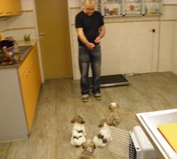 Welpenbesuche:Wir freuen uns, wenn Sie zu Besuch kommen und schon vor dem Auszug eine Bindung zu Ihrem neuen Familienmitglied aufbauen. Natürlich können wir uns nicht gleich 3-4 Stunden mit Ihnen hinsetzen, weil es einfach immer viel zu tun gibt mit so einen Rudel ;-) Lieber öftere Besuche von ca. 1 Stunde sind auch für Ihren Schatz besser, weil die kleinen Welpen ja auch immer noch sehr viel schlafen. Sollten Sie gerade erkrankt sein, dann bitte nicht böse sein, wenn Sie nicht zu Besuch kommen können. Die Gesundheit unserer Welpen liegt uns sehr am Herzen. Besuche fremder Hunde bei uns während der Aufzuchtzeit der Welpen nicht möglich. Gegen all die "Keime" aus unserem Umfeld bekommen die Kleinen einen guten Schutz von ihrer Mama. Aber fremde Hunde bringen eventuell unbekannte Erreger mit in unsere Umgebung. Für kleine Welpen ohne Impfschutz kann das sehr schlimm enden. Natürlich halten wir Sie auch zwischen den Besuchen mit Fotos und Telefonaten gerne über die Erlebnisse "Ihres Schatzes" auf dem Laufenden und freuen uns darüber Sie am Heranwachsen teilhaben zu lassen.