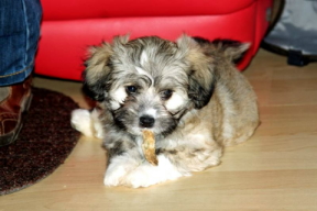 Bei meiner Geburt war ich das einzige Mädchen unter lauter Jungs. Und ob ihr es glaubt oder nicht: ich bin die Braune !!! Havis sind Wundertüten was die Farbe anbelangt :-)